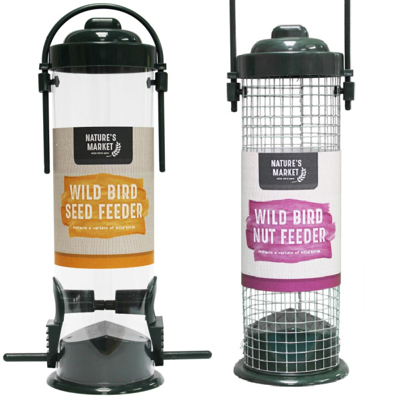 Made from plastic, these feeders comes complete with a standard 2 port design on the seed and metal mesh on the nut feeder, making them ideal for most garden birds.