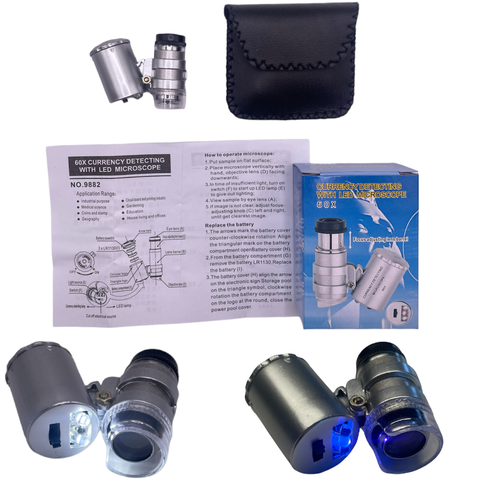 Includes a special LED light designed for hallmark verification and a regular LED light.