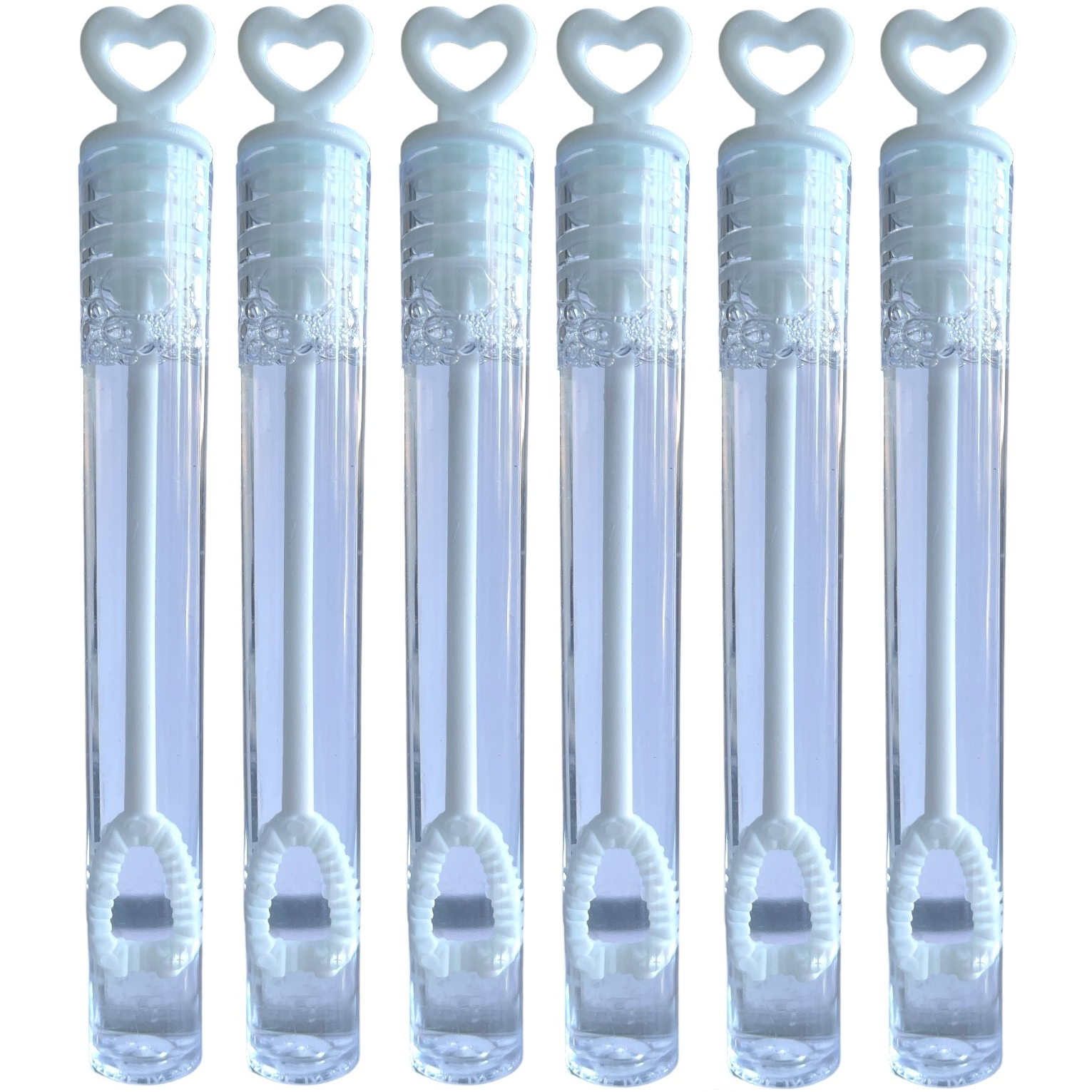 The white plastic tubes are adorned with lovely heart-shaped designs, making them a charming addition to any celebration.