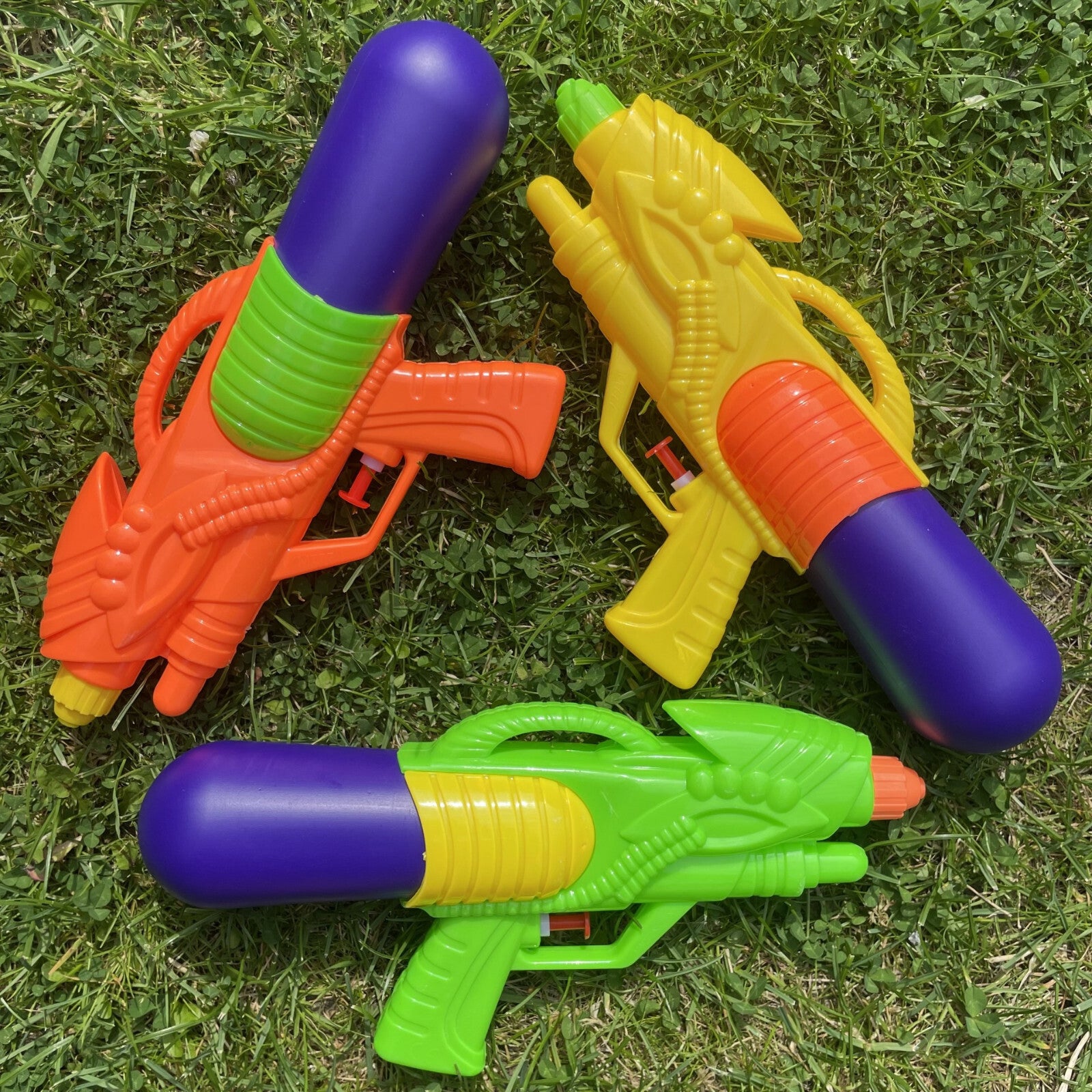 Get ready for some water fun with this set of three water pistols.