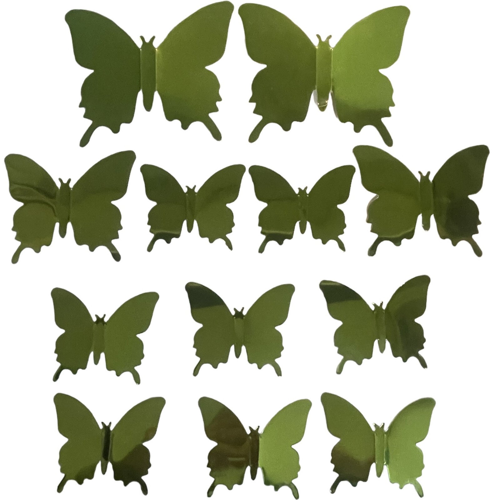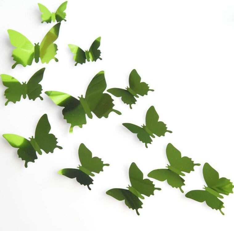12 Mirror Green Butterfly Wall Stickers 3D Metallic Room Decoration Craft Gift