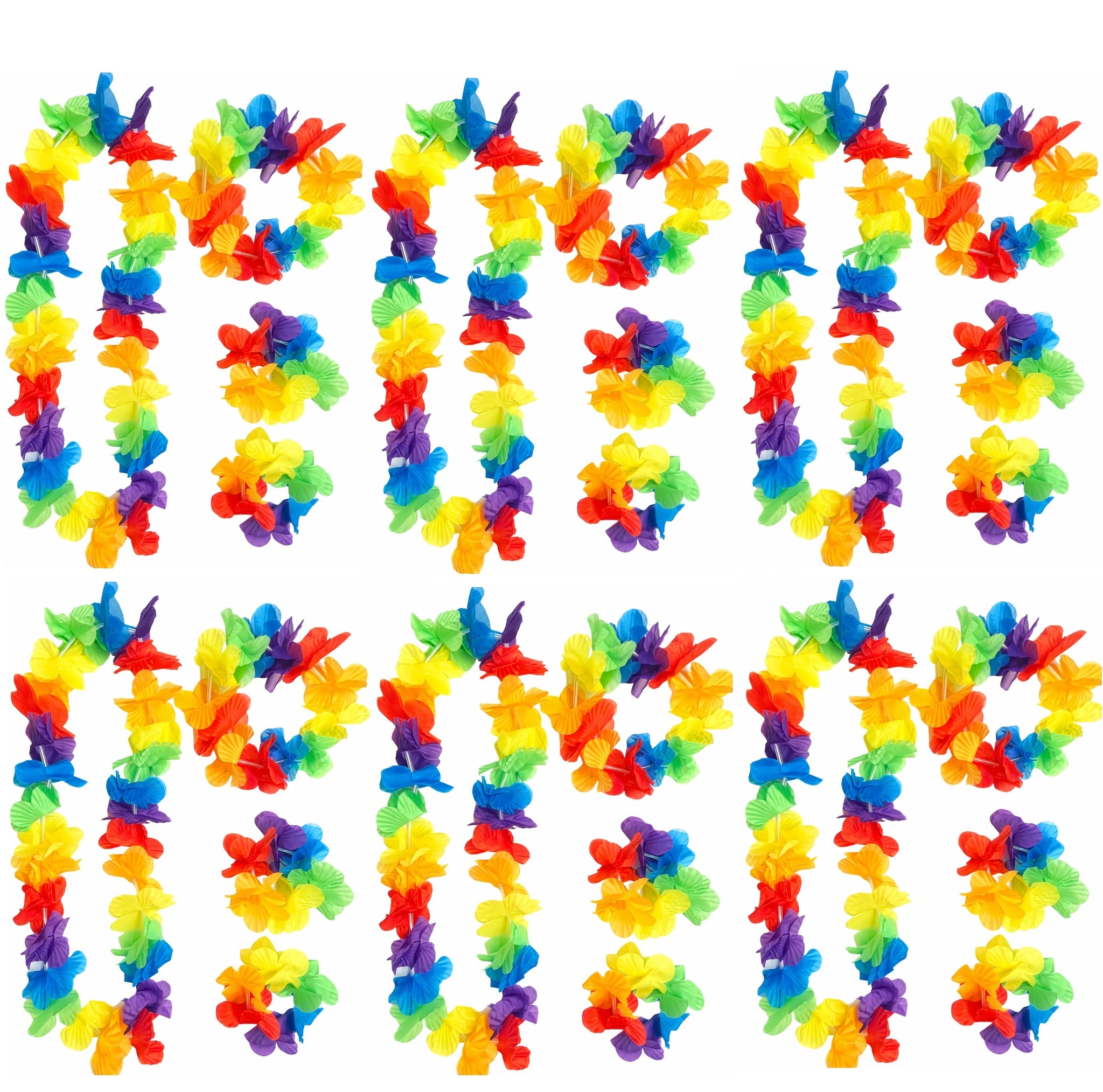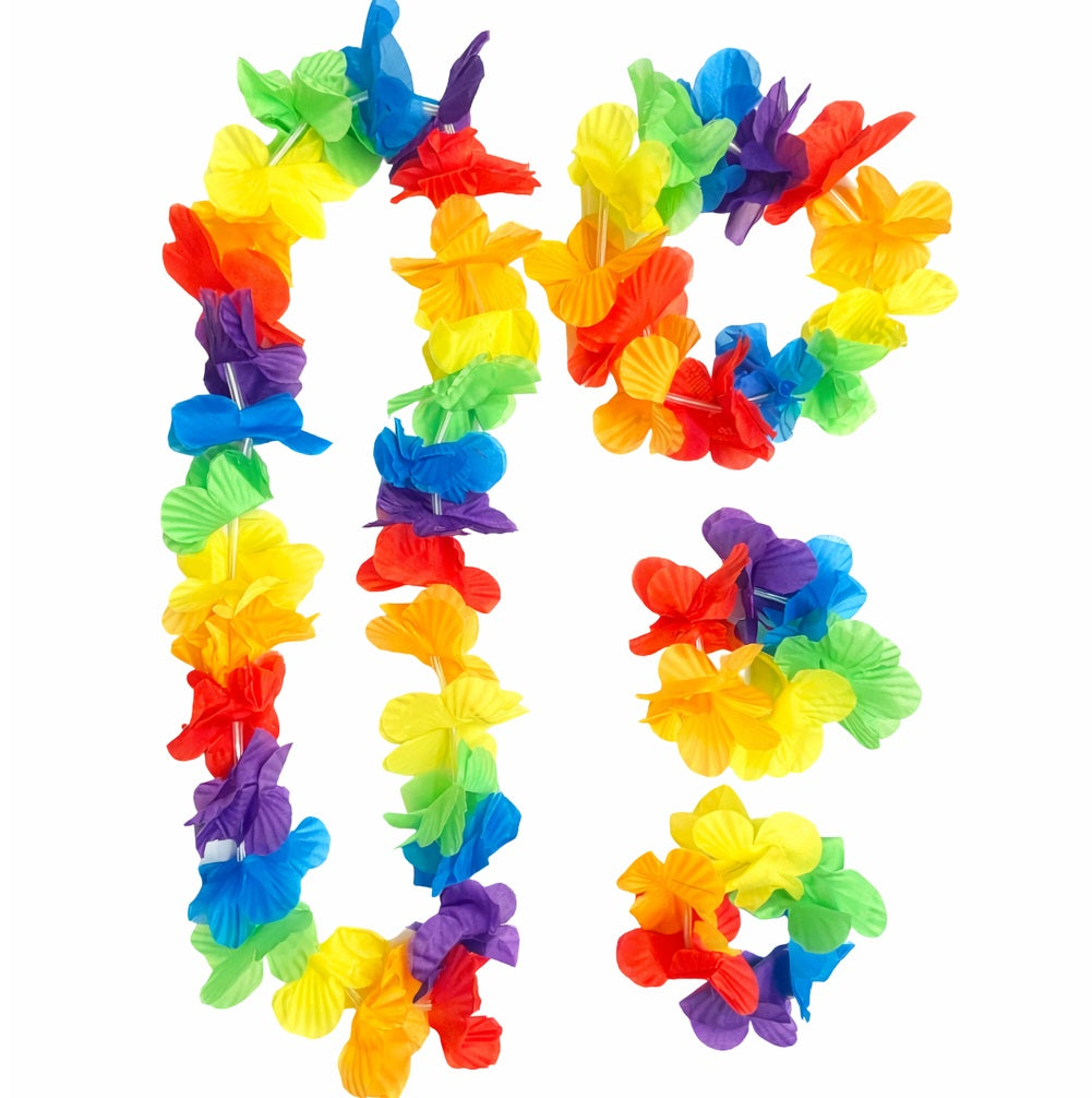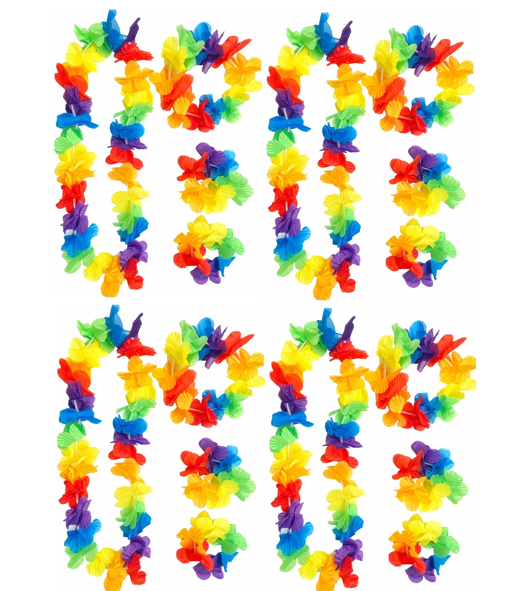 Get ready to party with these vibrant 4 piece Lei Hula Garland Sets.